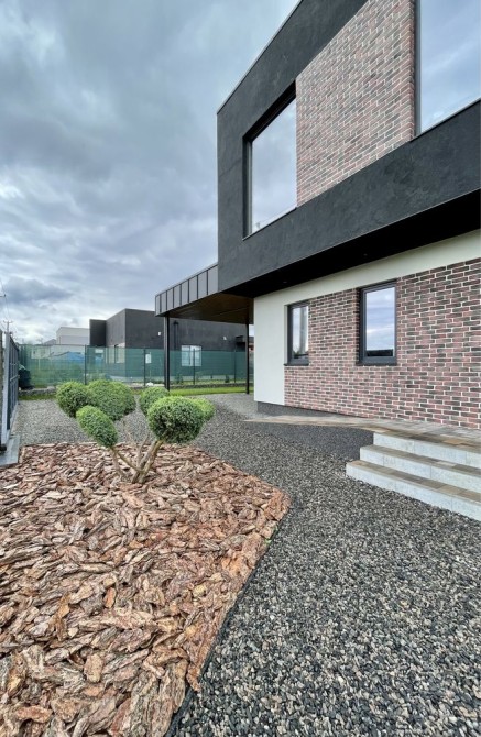 Сучасна архітектура в додатку з надійною побудовою та якісними матеріалами. Облаштована ділянка з ландшафтним дизайном. Естетичний зовнішний вигляд доповнює спокійна та затишна атмосфера.
