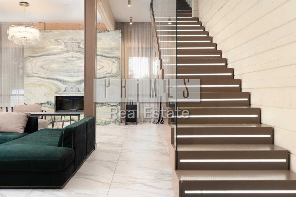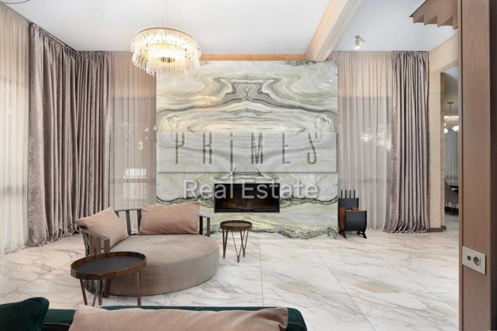 • Загальна площа: зручне планування — вітальня з каміном “Північне сяйво” з мармуру, 2 кухні (основна та додаткова), 1 спальня на першому поверсі