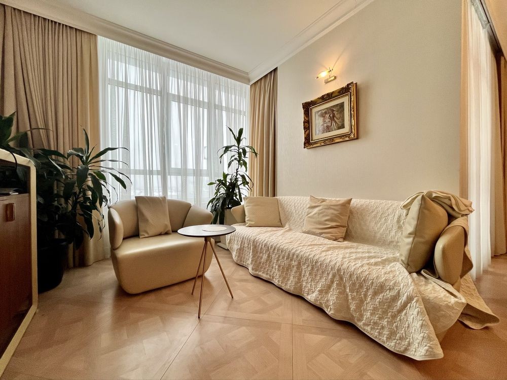 Дорогі матеріали, деревʼяні меблі на замовлення, увага до кожної деталі — від окремої пральні до автоматичного відкривання штор.