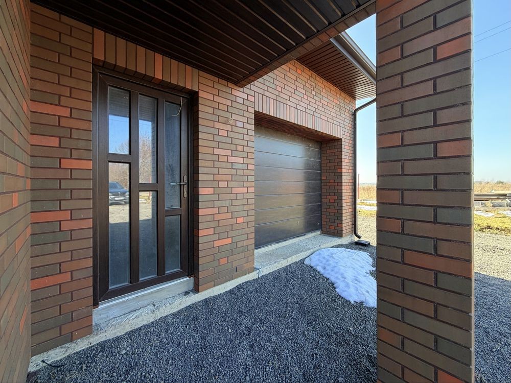 - Фасад: клінкерна цегла (вентиляція у фасаді).