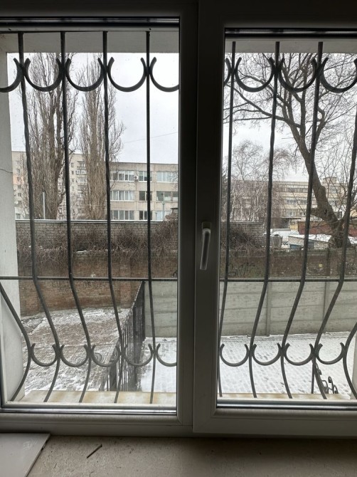 Металеві решітки на усіх вікнах .