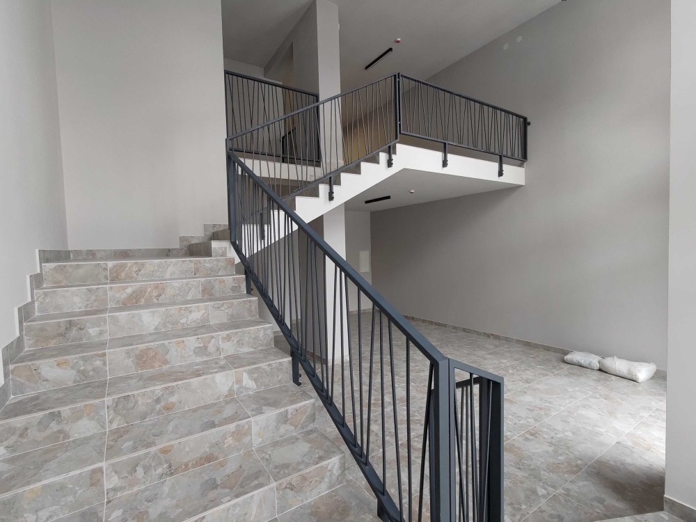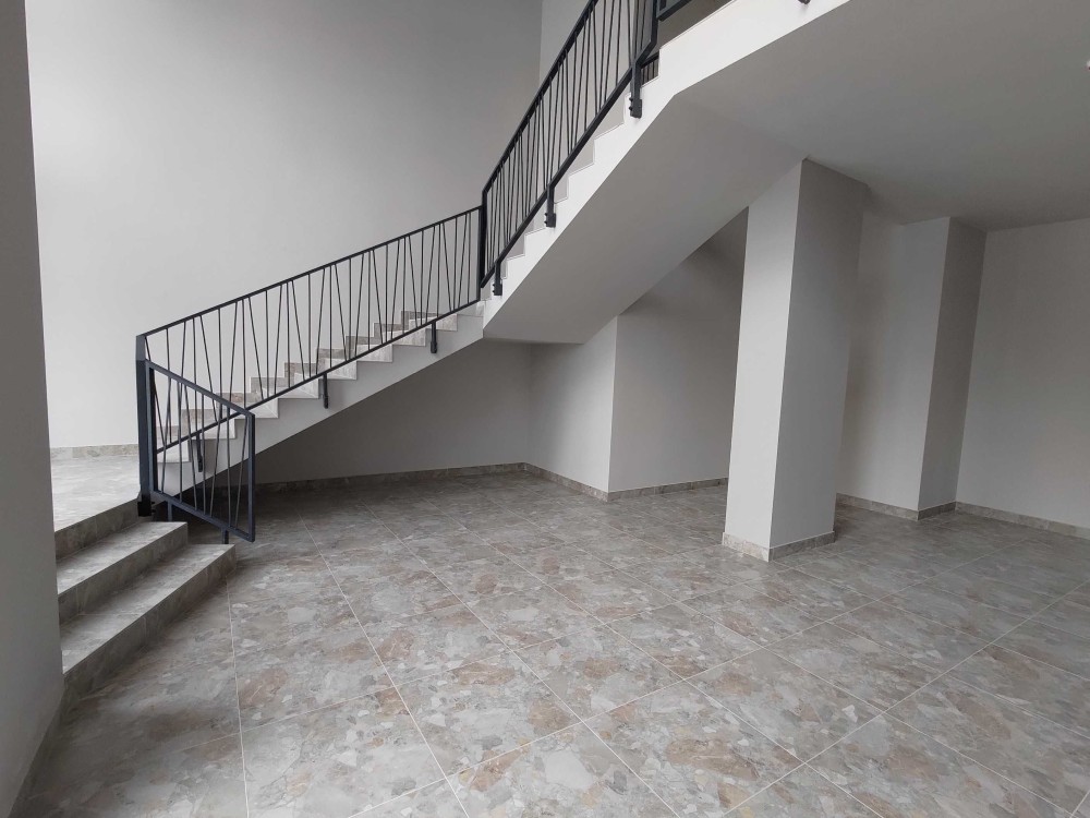 Вхід із вулиці, невеличкий спільний хол на першому поверсі, сходи і другий поверх поділений на кілька комерційних приміщень.