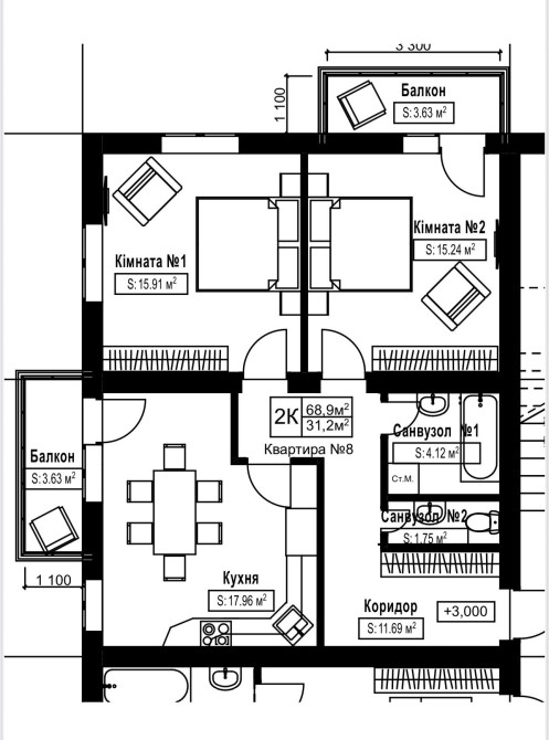 • Загальна площа 68.9 м2