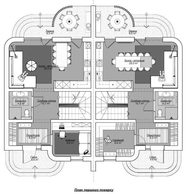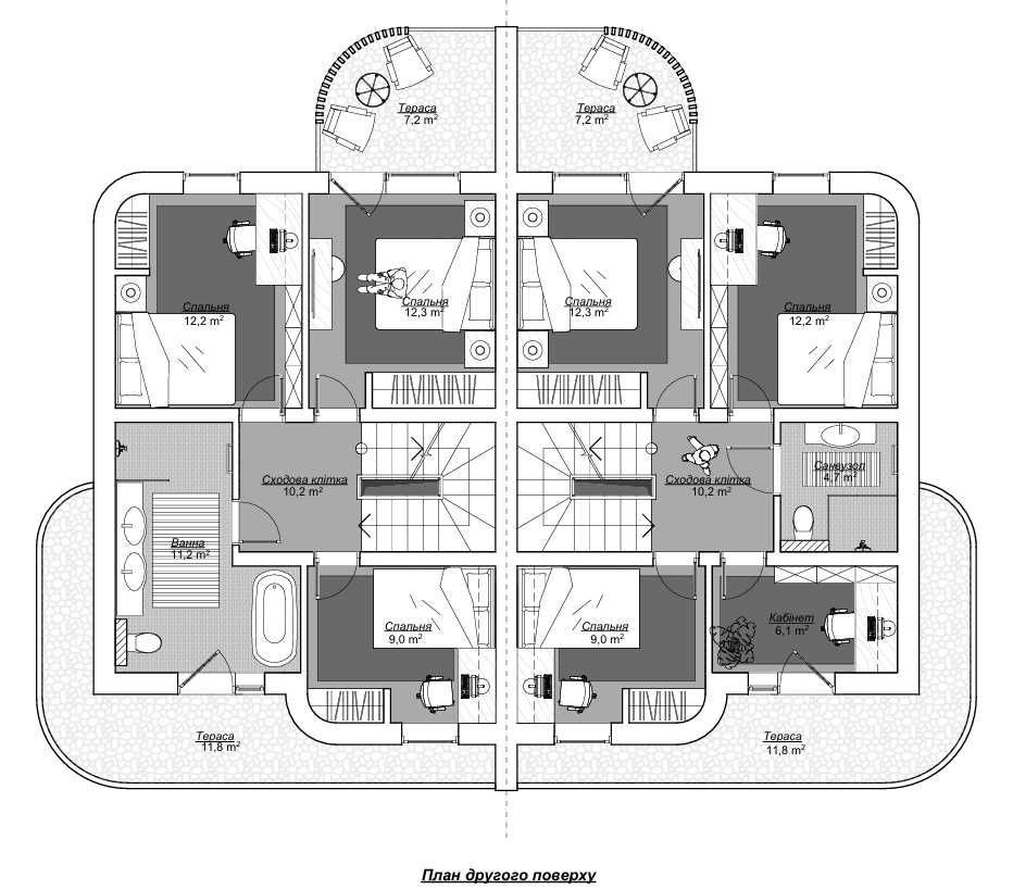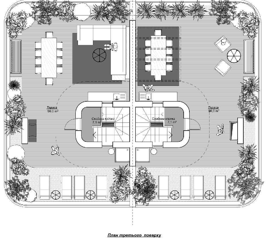 • Експлуатований дах — 90 м²