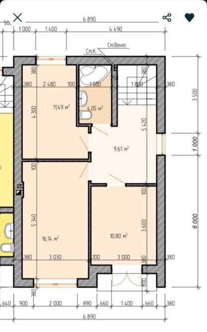 — 2 поверх: 3 окремі кімнати, санвузол