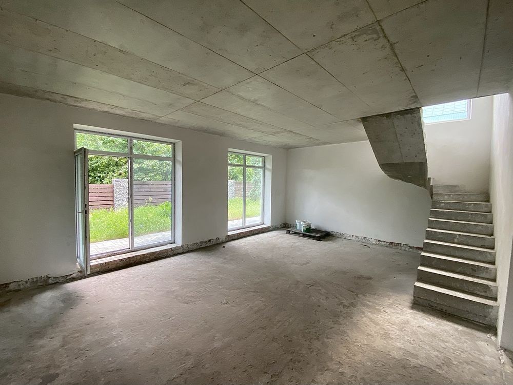 1-й поверх: кухня-студіо, окрема кімната під гардеробну або кабінет, санвузол (можна облаштувати як бойлерну).