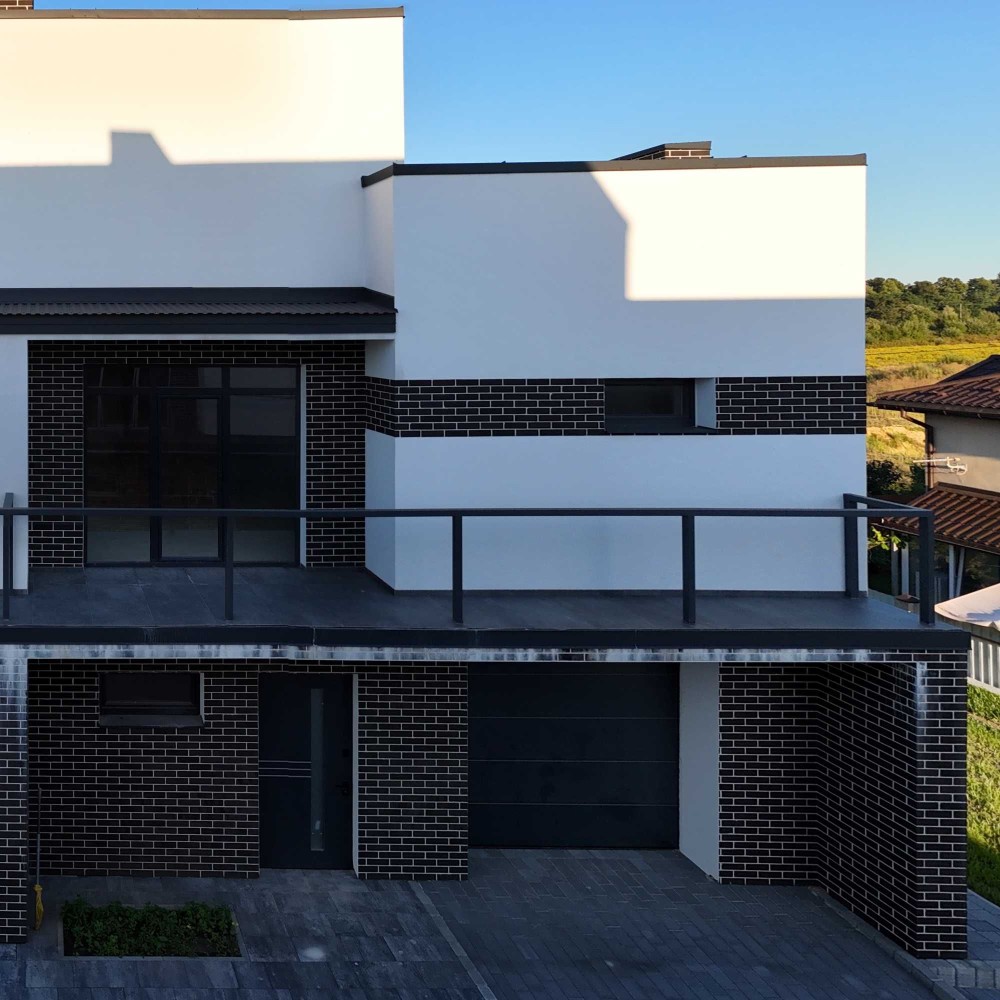 • Наповнення: чорнова стяжка, виходи на котел, лічильники на світло,воду та газ, гідроізоляція тераси, вікна Salamander (2-камерний склопакет, 6-камерний профіль), ворота Wisniowski, закрита облагороджена територія, газон, бруківка, освітлення, місце для 2-х авто