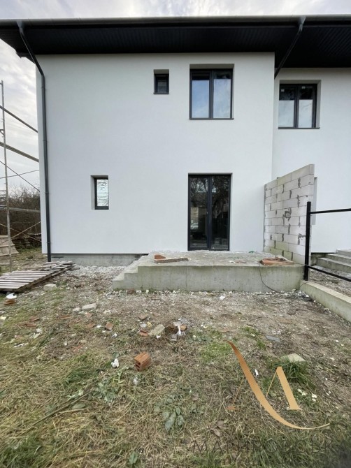 Будівництво з цегли, дах - металочерепиця. Зовнішні стіни утеплені пінопластом 10 мм. Бетонне перекриття. Бетонні сходи. Вікна енергозберігаючі з німецького профілю REHAU 5 камер, склопакет 3. Світло три фази, 10 Квт.