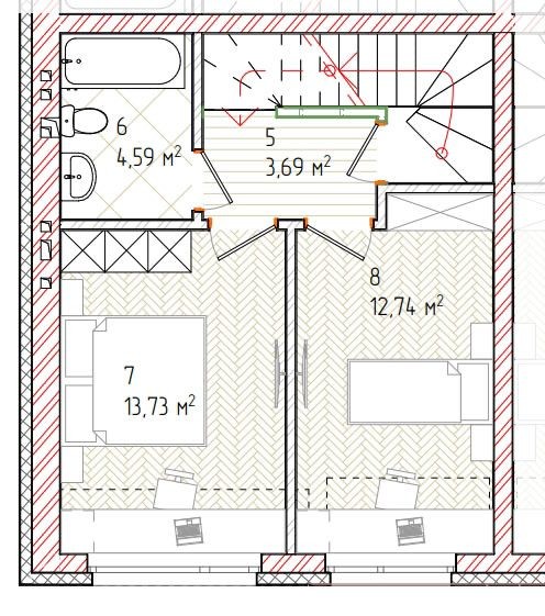 2 поверх: дві окремі спальні кімнати для затишку та відпочинку