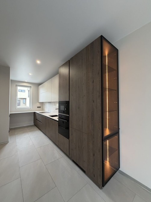 На першому поверсі розташована простора кухня-вітальня з вбудованою технікою, гардеробна або технічне приміщення з бойлером і котлом, санвузол та вихід у власний двір.