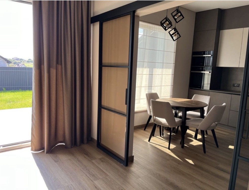 В будинку зроблений дизайнерський, сучасний ремонт.