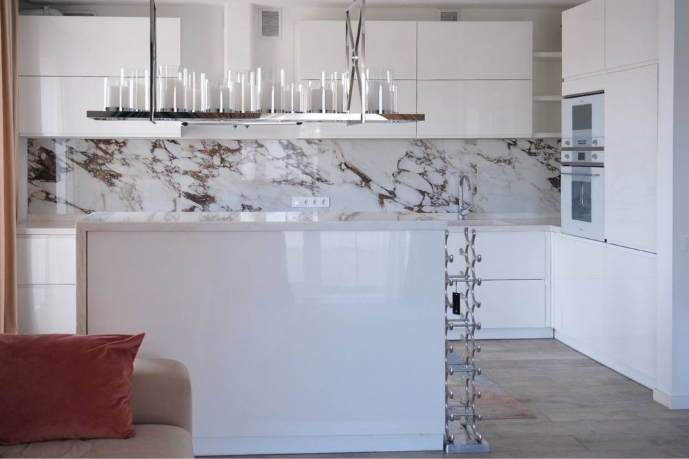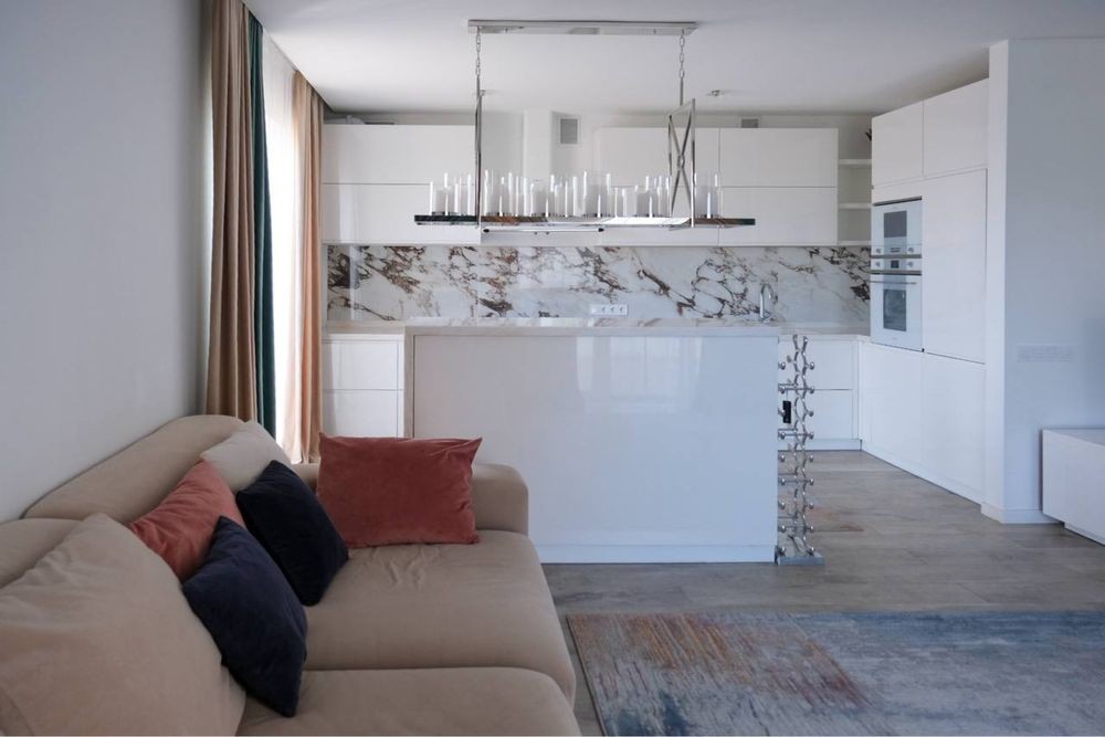 - ⁠перший поверх кухня-вітальня 56 м2. ( Вся побутова техніка на кухні Smeg)