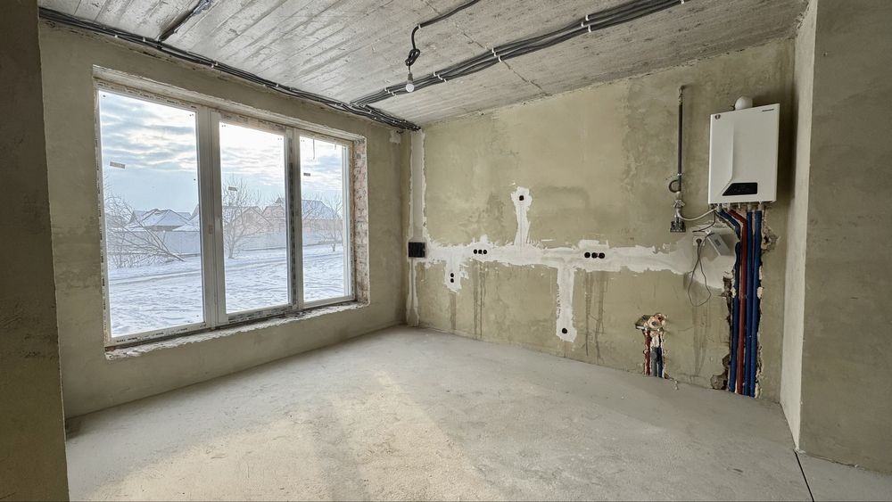 -встановленно котел,тепла підлога + радіатори, залита чистова стяжка;