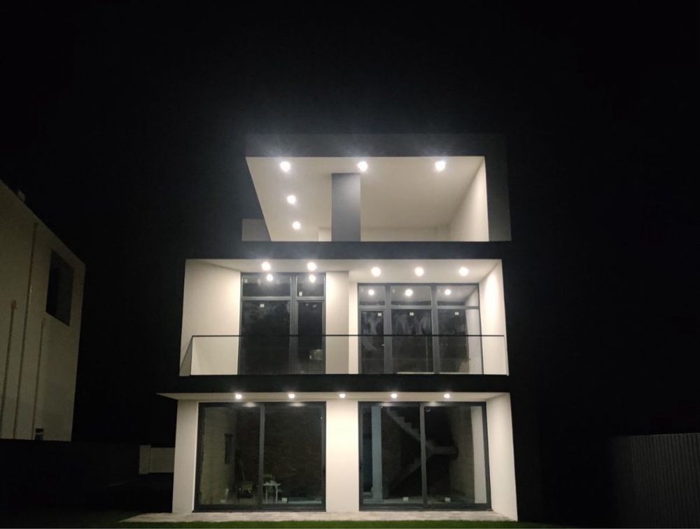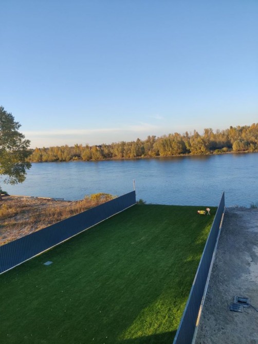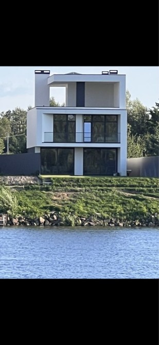 Будинок розташовано в с.Новосілки Вишгородського району на березі Десни. Монолітно-каркасний будинок, два поверхи та експлуатована покрівля з навісом. Будинок введено в експлуатацію. Загальна площа будинку 178 м2, експлуатована покрівля 95 м2, тераса під навісом з виходом з кухні-вітальні 20 м”. Загальні розміри будинку 16,7х9,1 м. Відео за запитом. Ділянка 8 сот. у власності, вихід до води 2,5 сот. в оренді на 49 років. Можливо влаштування спуску для катера, гідроцикла, власної пляжної зони. Будинок побудовано за авторським проектом з дотриманням всіх стандартів для преміум сегменту. Продумане планування включає в себе кухню-вітальню з видом на р.Десна на першому поверсі, чотири спальні, дві з яких з видом на р.Десна на другому поверсі, та експлуатовану покрівлю, яка за бажанням власника може бути додатково засклена і використовуватись незалежно від пори року. В кухні-вітальні є місце для каміну із змурованою для нього трубою димоходу. Монолітний армований гідроізольований утеплений з/б фундамент глибиною 1.2 м, перекриття монолітні з подвійним каркасом. Стіни з керамічного блоку Кератерм 380х250х238 мм утеплені мінеральною ватою 100 мм Rockwool Frontrock Supermax E. Внутрішні перегородкі виконані з повнотілої цегли М100. Пласка експлуатована покрівля виконана з утеплювача 250мм, італійської мембрани 1.5 та цементно-піщаної стяжки. Водозбірна система наружна, з підігрівом та дренажним колодязем. В наявності сертифікати на використані матеріали, фото і відео фіксація всіх етапів будівництва. Гарантії від будівельних організацій, які виконували роботи, на загальне будівництво, пласку покрівлю, вікна. На даху над експлуатованою покрівлею встановлені 20 модулів сонячних батарей, в будинку встановлені дві батареї загальної ємністю 10 кВт, які можуть заряжатись як від сонячних батарей, так і від центральної мережі і забезпечують безперебійне електроживлення будинку. Також до будинку заведено 20квт потужності від електромережі. Управління системою електроживлення будинку здійснюється через WiFi. Панорамні розсувні вікна на першому поверсі відкривають вид на Десну, вікна виконані з алюмінієвого профілю АLTEST LS70 з енергозберігаючими склопакетами та встановлені за методикою теплого монтажу Soudal SWS. Решта вікон виконані з армованого профілю REHAU Synego MD (3 контура ущільнення),теплий монтаж Soudal SWS. Підключений газ, котел Vaillant 28.5 кВт, перший поверх опалення теплі підлоги, другий поверх опалення радіатори Vaillant. В будинку розведена вода і каналізація, залиті стяжки підлоги на обох поверхах, буде виконана штукатурка. Встановлена і підключена на пульт сигналізація Ajax. Заведено інтернет оптоволокно. На участку розташовані власна скважина діаметром 100мм із встановленим глибинним насосом розташована в колодязі з обладнанням об’ємом 3 м куб, дренажний колодязь для для збіру води з дахів об’ємом 3 м куб, переливний септік з двох колодязів об’ємом 10 м куб.