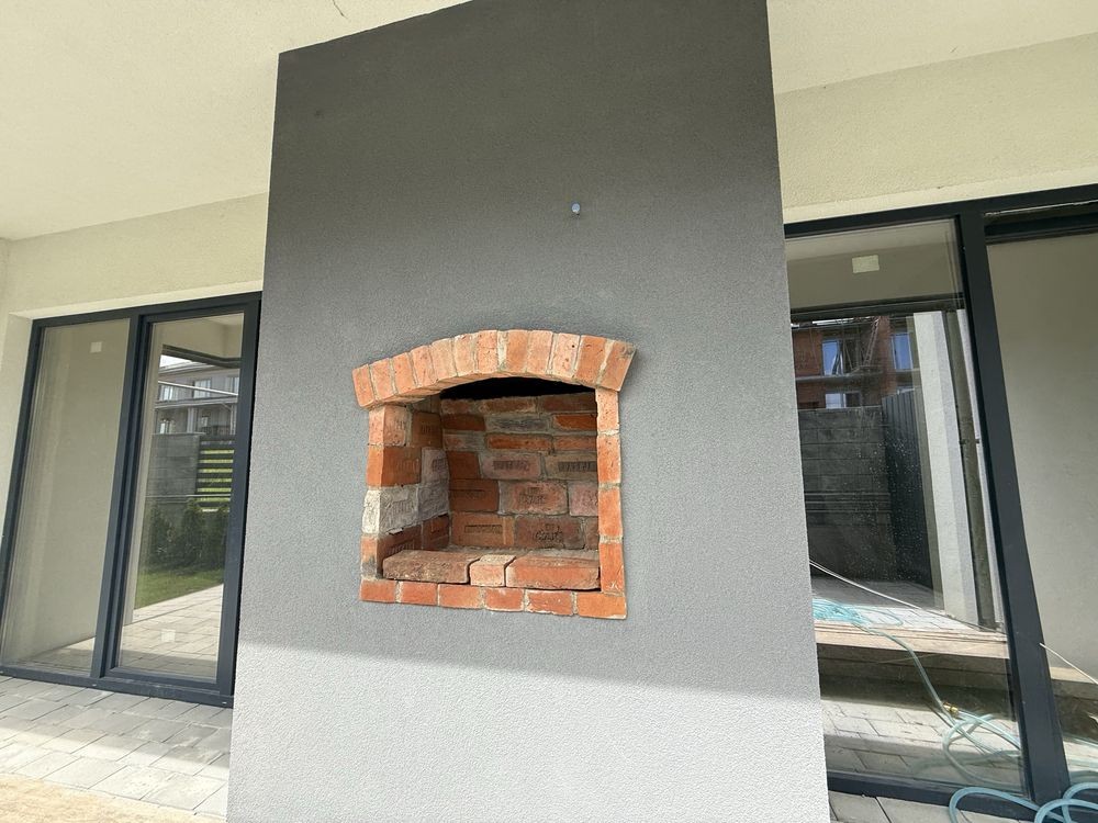 Окремо зроблено мангальну зону з внутрішнього боку будинку.