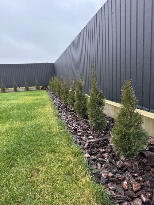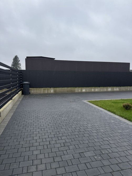 Автоматичні ворота, покладена бруківка, по периметру ПАРКАН з металопрофілю із залитим залізобетонним фундаментом.