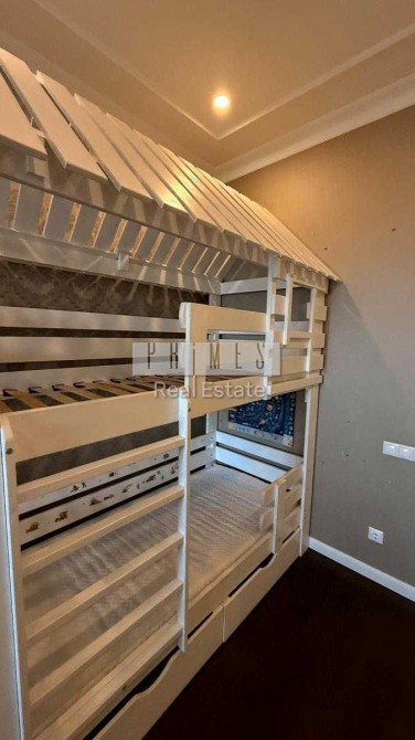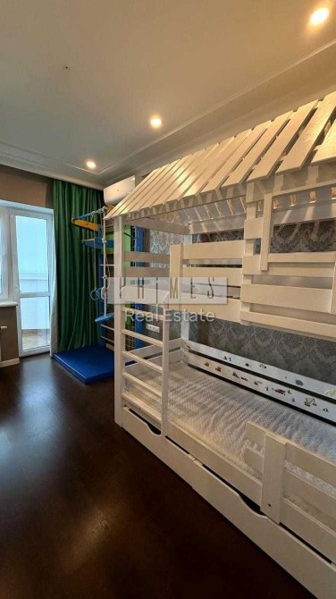 Перша спальня — дитяча: двоярусне ліжко, шафа для двох осіб, дитяча спортивна стінка. Може використовуватися як кімната вільного призначення.