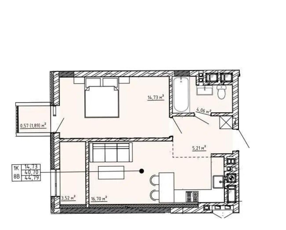 Площа — 44,79 м².