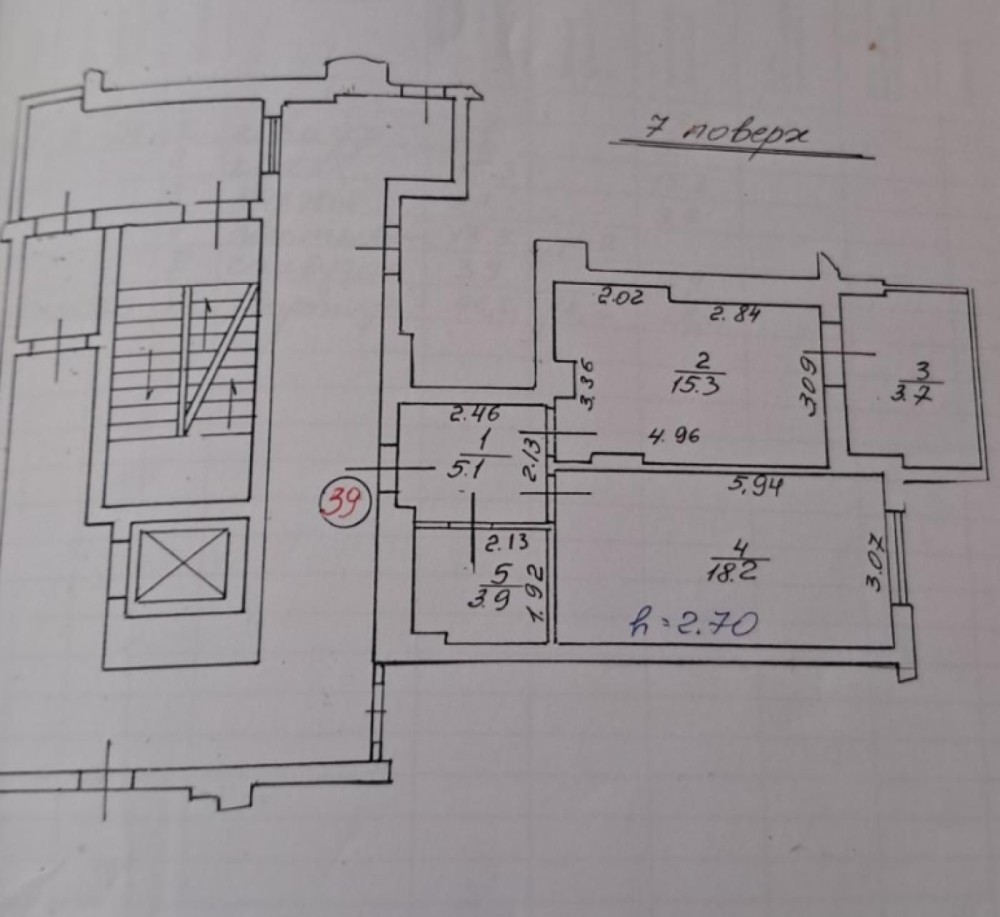 Площа: 46,2 м² (житлова — 18,2 м², кухня — 15,3 м²)