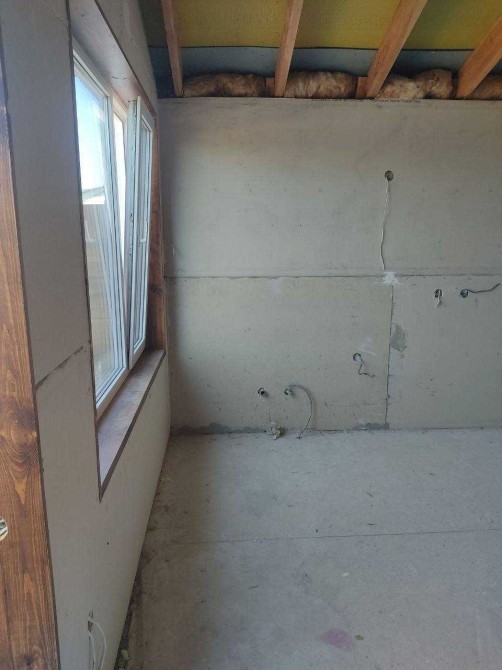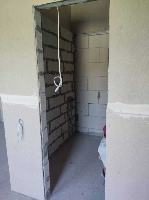 В квартирі підведена вода, світло, гіпсокартон настінах, на підлозі стяжка з бетону.