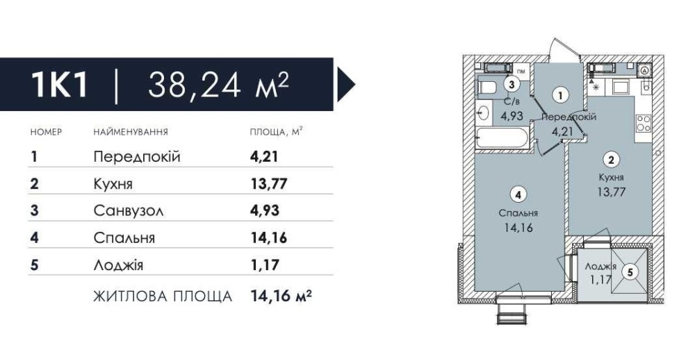 Пропонується 1-кімнатна квартира площею 38,21 м² з балконом — ідеальний варіант для комфортного життя або вигідної інвестиції.
