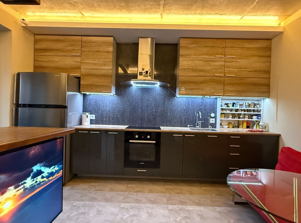 Квартира повністю укомплектована меблями та технікою. Встановлено інсінкератор, систему очищення питної води (осмос), кліматичне обладнання та систему «розумний будинок».