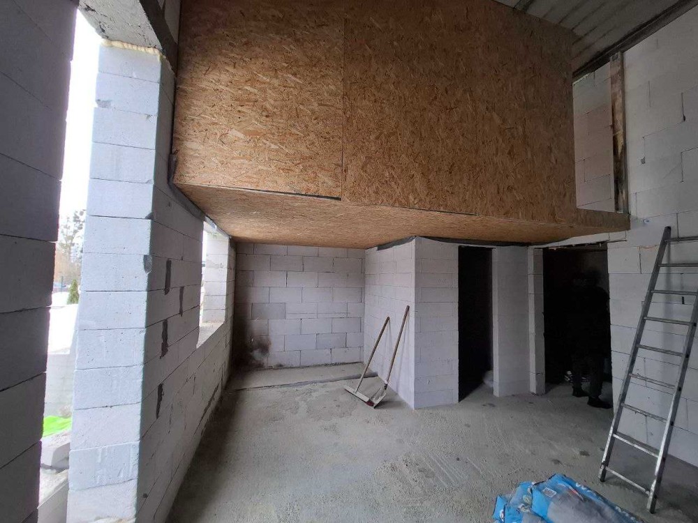 Будинок вже завершений, наразі тривають роботи над перестінками та комунікаціями.