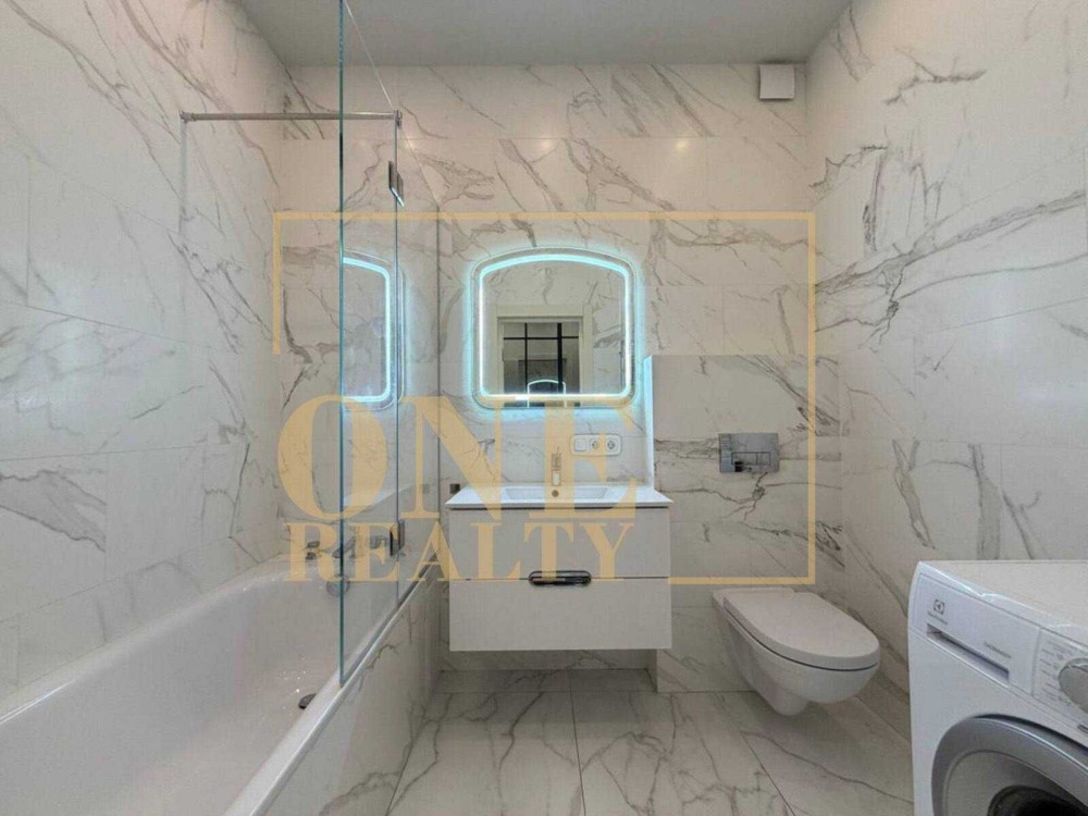 У квартирі передбачено два стильні санвузли з теплою підлогою, оформлені у світлій мінімалістичній концепції.