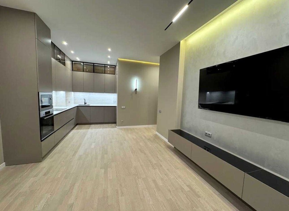 Простора кухня-вітальня — серце квартири, ідеальне місце для відпочинку та прийому гостей.