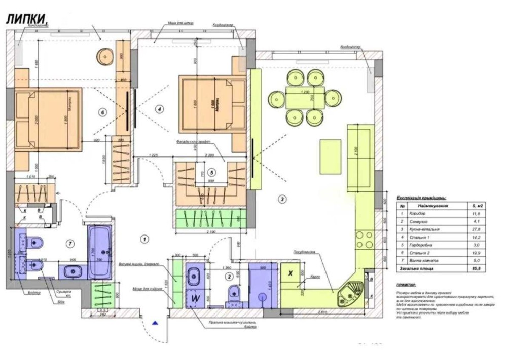 Встановлено кондиціонери у кожній кімнаті, телевізор, відеодомофон.
