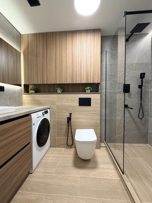 Виконано якісний ремонт, робили для себе з хороших матеріалів. Кухня укомплектована меблями, також наявна вся необхідна побутова техніка: холодильник, варильна поверхня, духова шафа, посудомийна машина, пральна машинка, два телевізори.