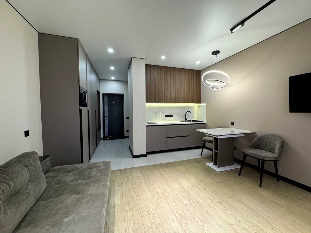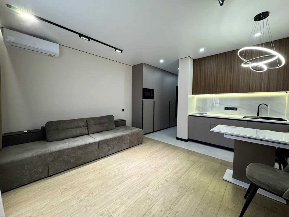 Світла та сучасна студія з якісним дизайнерським ремонтом.