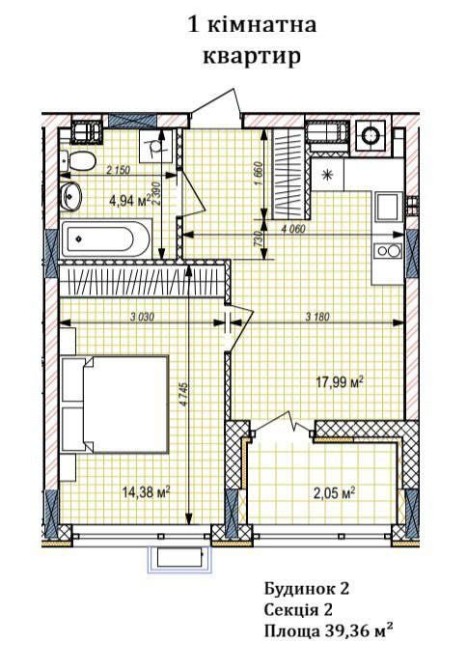 • Загальна площа 39.36 м2
