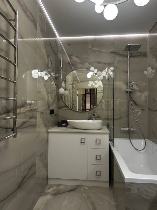 У квартирі виконано преміальний дизайнерський ремонт із використанням якісних матеріалів.