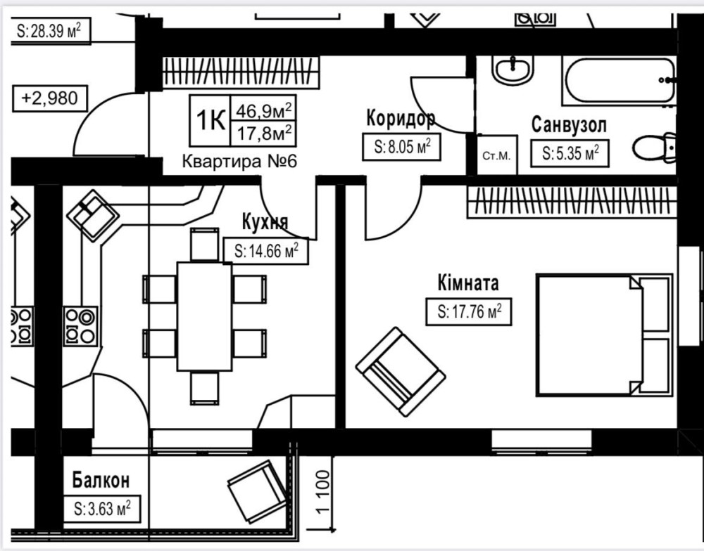 • Загальна площа 46.9 м2