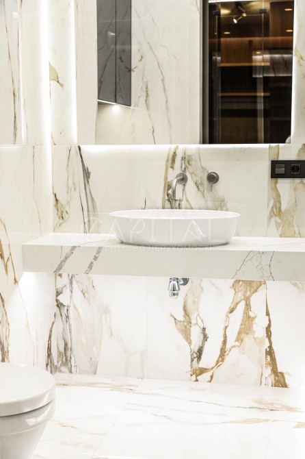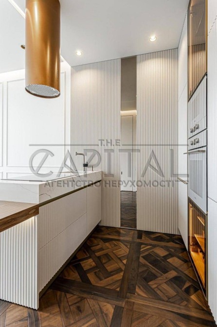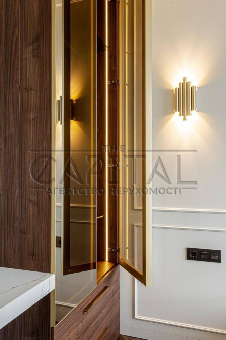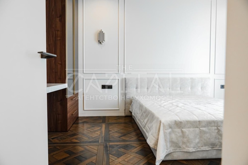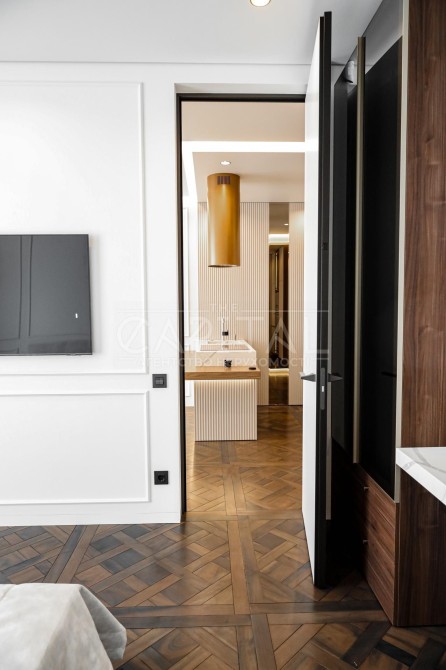 Преміальний ремонт – авторський дизайн із використанням тільки натуральних та екологічних матеріалів. Натуральний паркет, двері заввишки 2,8 м, елітна сантехніка Grohe, італійська плитка та ексклюзивні оздоблювальні елементи створюють атмосферу витонченого смаку.