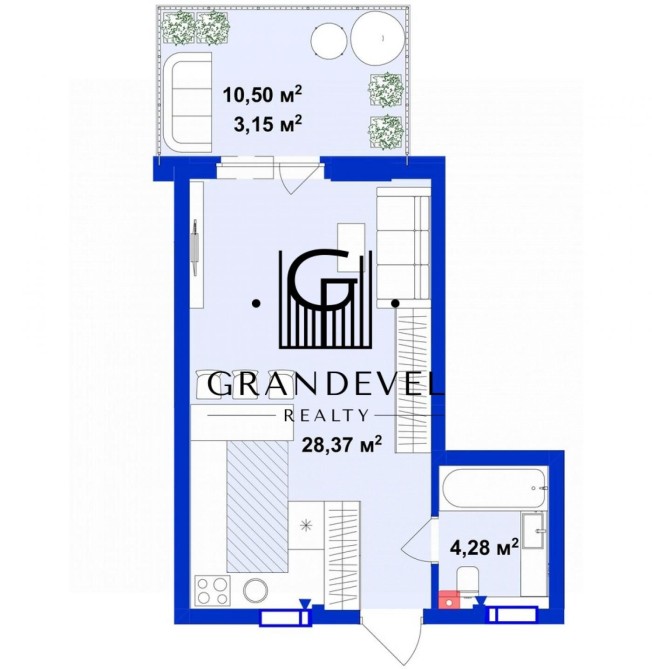 • Загальна площа 36 м2