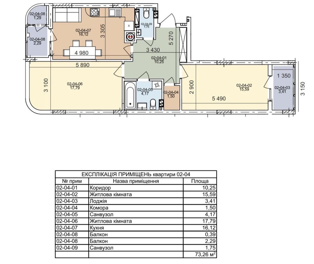 • Загальна площа 73 м2