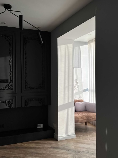 Загальна площа квартири — 92 м². Планування продумане та розділене на дві функціональні зони.