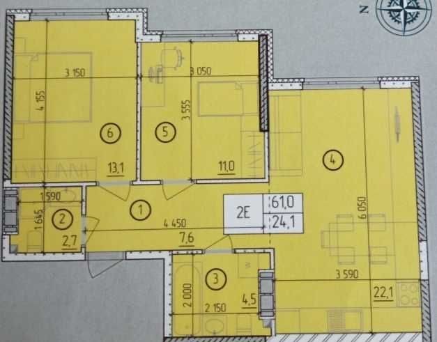• Загальна площа 61 м2