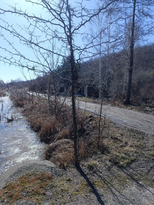 На участку є колодязь, хоз.будівлі та молоді дерева.