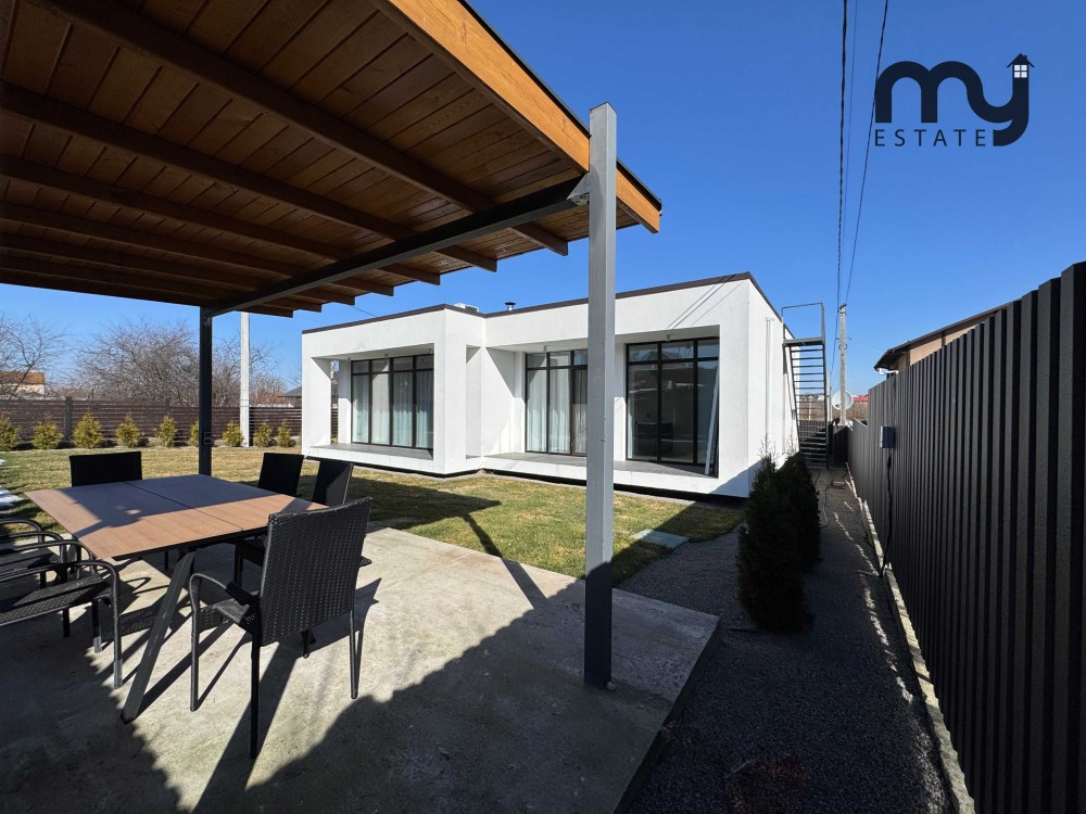 Одноповерховий окремий будинок з 2 санвузлами, просторою кухнею-вітальнею і 3 кімнатами з виходом на терасу, бойлерна.