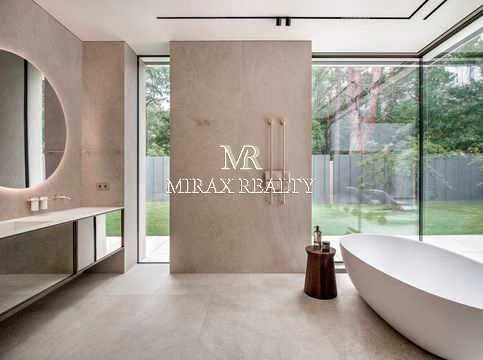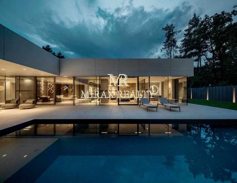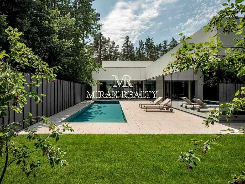 Продаж нового будинку 307 м2 з терасою, басейном, домашнім вуличним кінотеатром, на ділянці вікові сосни, Плюти, Конча-Заспа. Будинок збудований в 1 поверх за авторським проектом, навісні панелі HPL - Fundermax (Австрія), гарантія 50 років, безшовна конструкція фасадної плитки, що дихає. Товщина плити 6 мм, термоефективна панель, матеріал фасаду повністю екологічний. Площа скління житлової зони до 70%, безрамкові двокамерні вікна із сонцезахисним покриттям спеціально створені на заводі-виробника Reyners (Бельгія) під даний будинок. Зовнішня висувна система рафштор Manezh дозволяє створити потрібний рівень затемнення. Вітальня: друге світло та висота стелі 6 м, вітальня з'єднана з прихованим кабінетом, кухня, господарська майстер-спальня, 2 спальні з санвузлами. Кімната для персоналу + гостьова спальня. Система розумного будинку, система вентиляції з рекуперацією. Тераса: підлога, що підігрівається навколо басейну і на терасі. На ділянці 11 соток виконано ландшафтний дизайн, басейн (12х3, 5м) з підігрівом та протитечією, з лайнерним покриттям (для безпеки дітей). Комунікації: електроенергія – 20 кВт, газ – 10 куб/год, газогенератор – 15 кВт, свердловина, очищення води. В'їзна група: комфортної висоти паркан, безшумні автоматичні ворота, паркінг для 2 машин. Асфальтований під'їзд, комфортна транспортна доступність Старообухівською трасою, елітна частина Кончі-Заспи.