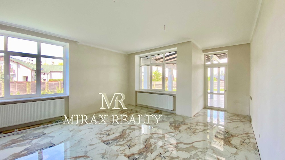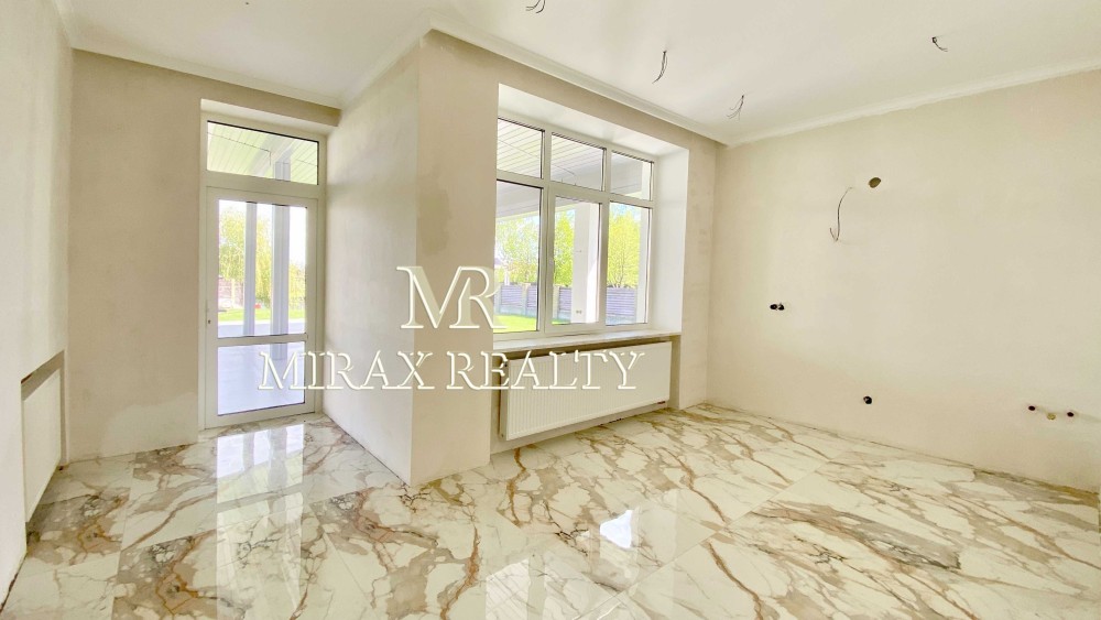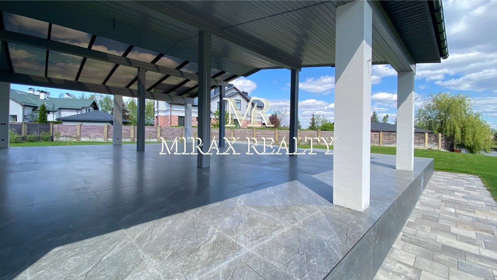 Продаж нового сучасного будинку з частковим ремонтом в с. Плюти, Конча-Заспа. Загальна площа будинку 396 м2 + крита тераса 100 м. Будинок збудований у 2 поверхи з червоної цегли, утеплений, фасадна штукатурка. Будинок готовий для декоративних робіт та меблювання. Сучасне концептуальне планування, 1 поверх: вітальня з виходом на терасу, кухня з обідньою зоною, 2 санвузоли, кабінет / гостьова спальня, пральна, котельня, літня кухня. 2 поверх: майстер-спальня з санвузлом гардеробною кімнатою та балконом, 4 спальні, 2 санвузли, гардеробна, балкони. На ділянці 25 соток виконано ландшафтний дизайн, вимощені доріжки, освітлення, паркан. Гараж на 2 автомобілі. Комунікації: електрика, септик, свердловина, опалення електро та пілети, підведено до ділянки газ. Автоматичні ворота, асфальтований під'їзд. Власний вихід на р.Козинку, берегоукріплення. Збудовані сусіди. Закрита територія котеджного містечка, охорона. Є дитячий майданчик. Поруч ліс. Найкраще місце для високого рівня життя. Комфортний заїзд зі Старообухівської траси.