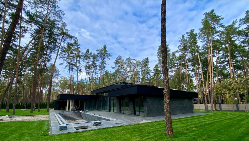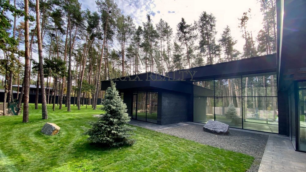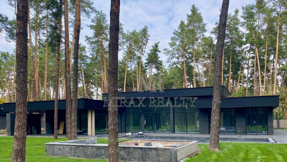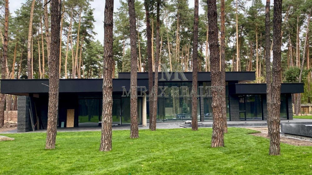 Продаж нового будинку з ремонтом 450м2 у закритому котеджному містечку, Плюти, Конча-Заспа. Будинок в 1 поверх у стилі Hi-Tech з якісних екологічних матеріалів за проектом архітектурного бюро.