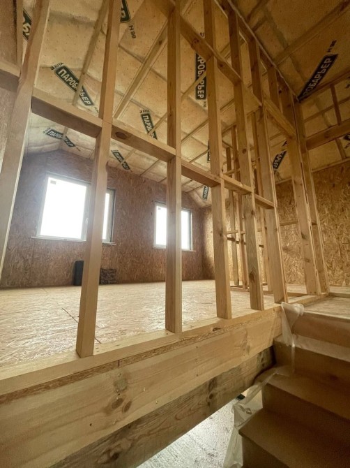 Продається новий будинок Бориспілький район, село Петропавлівське, котеджне містечко Вишневий Хуторок 2, черга 6, вулиця Щаслива.10 километрів від Києва,З вікон вид на поле. Проект будинку Амстердам. Будинок загальною площею 105 м2, На першому поверсі розташовано тамбур 2.88 м2, санвузол 2.96 м2, коридор 3.82 м2, спальня 7.69 м2, кухня- вітальня - 25.93 м2, тереса- 13.80 м2.На другому поверсі хол 2.58 м2, спальня 15.48 м2,спальня 17.12 м2, санвузол 1.74 м2, санвузол 4.28 м2. Будинок побудований на міцному стрічковому фундаменті цільною плитою. Для основи будинку використовувалась sip-панель. Зовнішні стіни утеплені. Вікна, терасні блоки встановлені строго по госту(з використанням гідро та паро ізоляційними мембранами). Дах - м'яка черепиця.До будинку підведене водопостачання від насосної групової скважини, напор потужний. На території влаштований септик в три кільця. Потужність 8 КВт Приведене 3-фазне електроживлення від нового трансформатора по новим лініям електропостачання, будинок знаходиться на початку лінії тому падінь напруги в майбутньому не буде, а ввідний кабель в 4 рази перевищує розрахункове навантаження що забезпечить в майбутньому розширення з поживних потужностей. В середині встановлений тимчасовий електричний щит із освітленням також повністю облаштований санвузол. Всі внутрішні і зовнішні деревʼяні конструкції та поверхні оброблені антисептичними та протипожежними речовинами. Технологія за якою збудований дім та зовнішнє оздоблення надає йому дві основні властивості - екологічність та енергоефективність, по скільки дім стає натуральним термосом - максимально тримає тепло взимку та не пропускає створену прохолоду влітку. Всередині всі стіни та перекриття виконані з osb плити, що дозволить гарно зекономити на чорновій стадії ремонту.