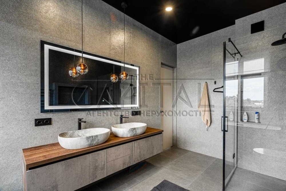 Продаж БЕЗ комісії. Сучасний будинок з новим ремонтом в мальовничому місці, поряд із чудовим озером. Розташований біля с.Мощун у закритому містечку "Джерело". Хвойний ліс, велике озеро, охорона 24/7, гарні сусіди - ідеальні умови для спокійного життя. На іншому березі озера - комплекс відпочинку Пуща Лісова. До Києва 20 хвилин: по варшавці через Горенку або через Пущу-Водицю (12 км від КП Пуща-Водиця). Ціна 270000 дол. Загальна 250 кв.м.+ Тераса 20 м. На 1 поверсі: передпокій, санвузол, гостьова спальня або кабінет , кухня - вітальня з чудовою фінською піччю - каміном та виходом на терасу. На 2 поверсі: 3 спальних кімнати (одна - з власною ванною та гардеробом), санвузол. Цокольний: зона відпочинку, великий хамам, санвузол, технічні приміщення з окремим виходом. Будинок дуже комфортний і головне - ще ніхто не жив! Стіни - керамоблок / клінкерна цегла, утепленний мінватою 100 мм. Дах - бітумна черепиця ONDULINE, утеплення 300 мм. Вікна REHAU (3-камерні). Новий стильний ремонт - якісні та довговічні матеріали. Підлога - плитка Італія, парккет Норвегія. Стіни та стеля - фінська фарба, пробка Португалія, шпалери (Ламборгіні, Трусарді) Італія. Світло - люстри Італія. Меблі - дуб і груша. Сантехніка - Італія. Опалення - сучасний тепловий насос, збереже ваші гроші та екологію навкруги! Тепла підлога скрізь, в спальнях радіатори. Гаряча вода - тепловий насос/бойлери. Електрики 32 кВт. Зроблено виведення кабелів у двір для генератора та зарядки електроавтомобіля, а також на даху - для сонячних панелей. Власний септик (2 х 3 м3), центральне водопостачання + 2 власні свердловини з фільтрами (130 м, Сеноманського водоносний горизонт). Ділянка рівна, є зона барбекю, є власний льох(погреб). Сховище для палива. Автоматичні ворота. Крита парковка на 2 авто, є місце для авто гостей. будинок, стіни: керамічна цегла; житлових повірхів: 2; ділянка: 7 сот.