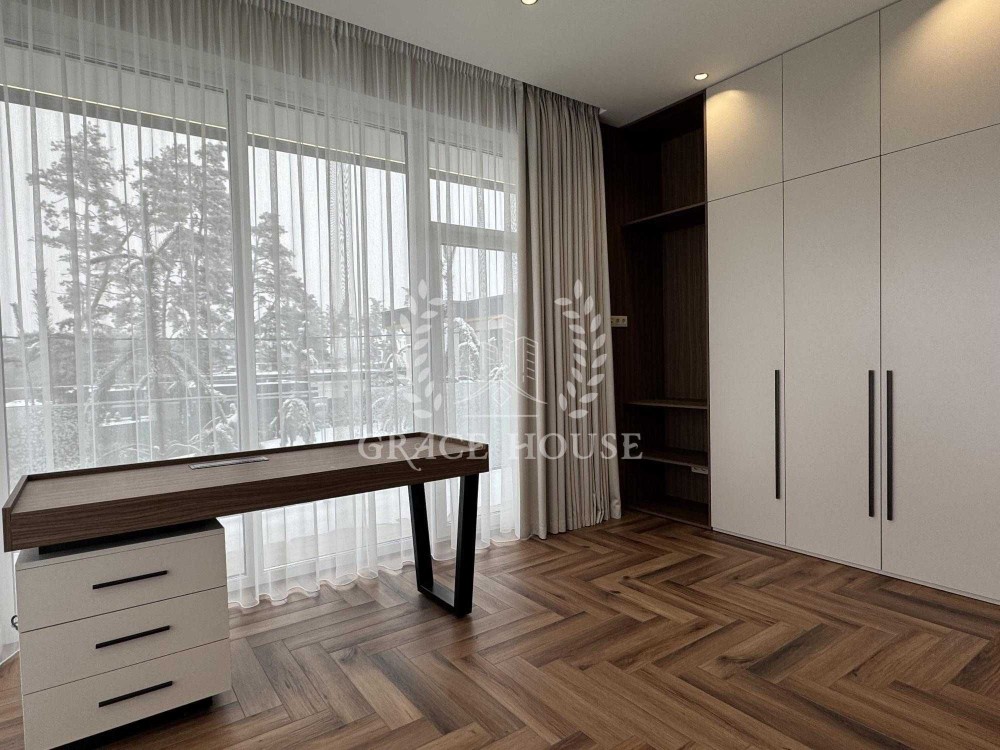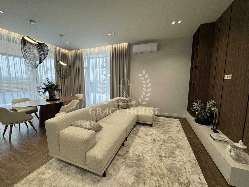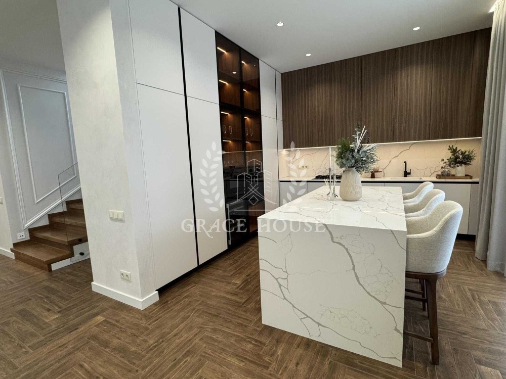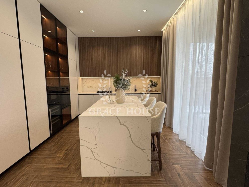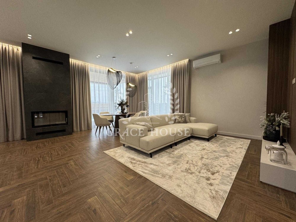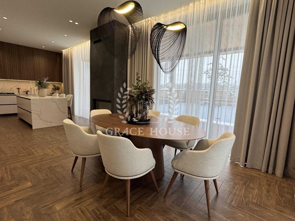 4 кімнатне планування, простора кухня вітальня з виходом на терасу, 3 санвузли, дві гардеробних, тех.приміщення