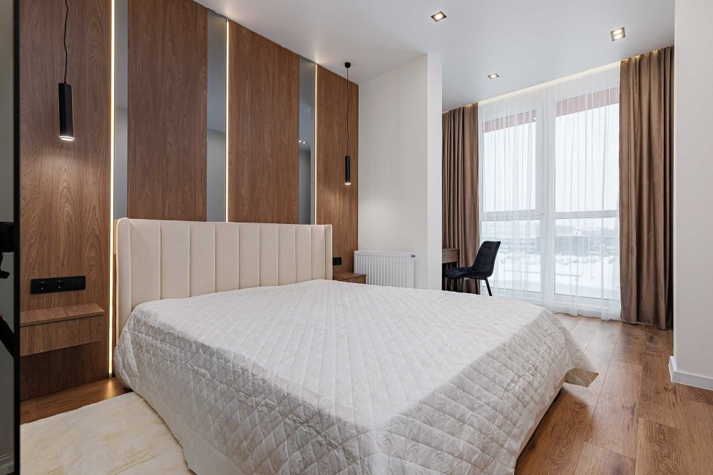 Квартира повністю вмебльована і оснащена усією необхідною побутовою технікою для комфорного проживання: вбудований холодильник, духова та мікрохвильова печі, посудомийна машина, індукційна плита, витяжка, телевізор Philips, кондиціонер на обігрів та охолодження, прально-сушильна машина LG.