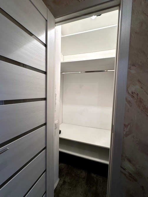 В квартирі є гардеробна з окремим входом з коридора. Також є комора на кухні. На кухні є можливість доставити диван.